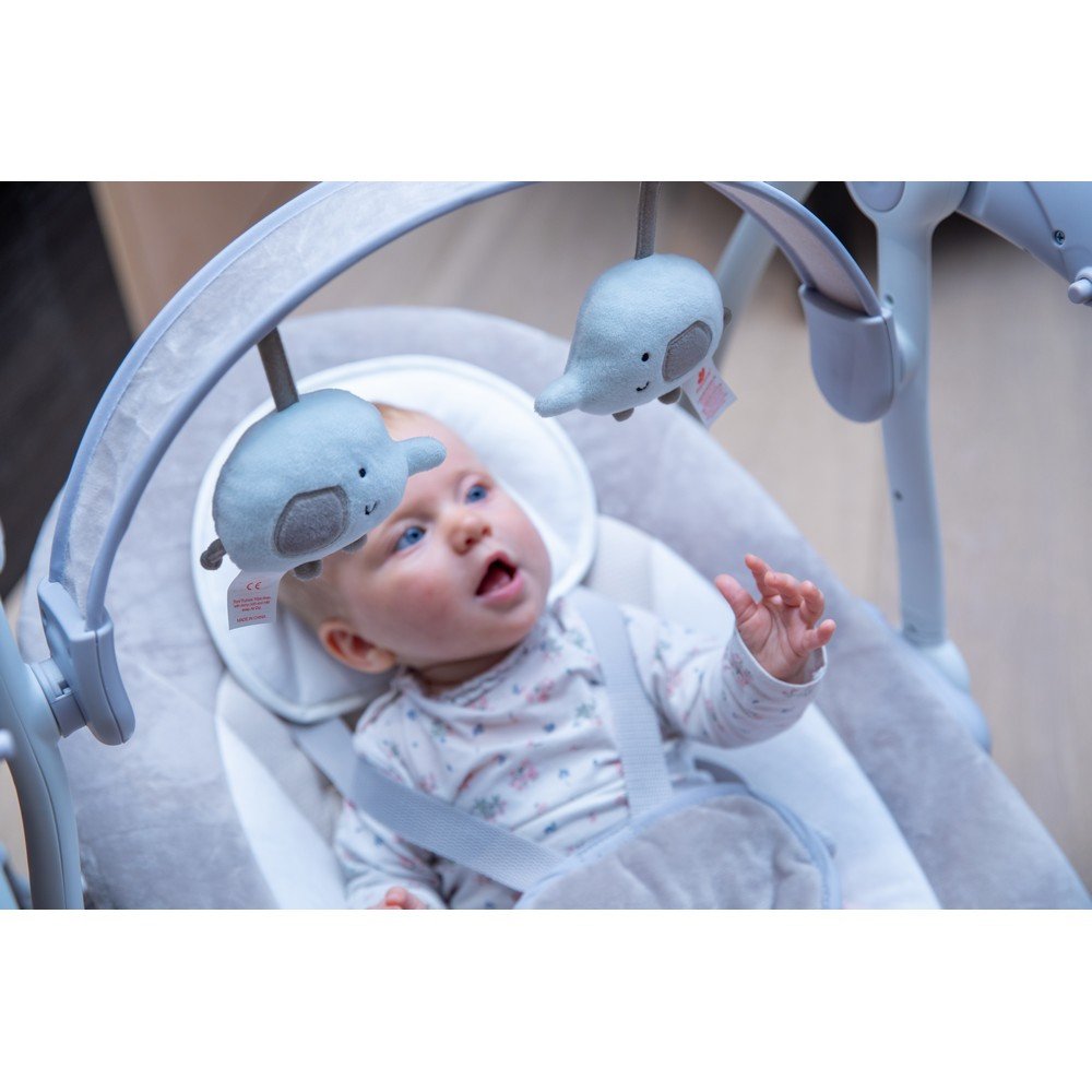 L’arche de jouets facilement détachable, ornée de deux jouets attrayants, captive l’attention de votre bébé et stimule ses sens en développement, faisant du swing une expérience amusante et éducative.