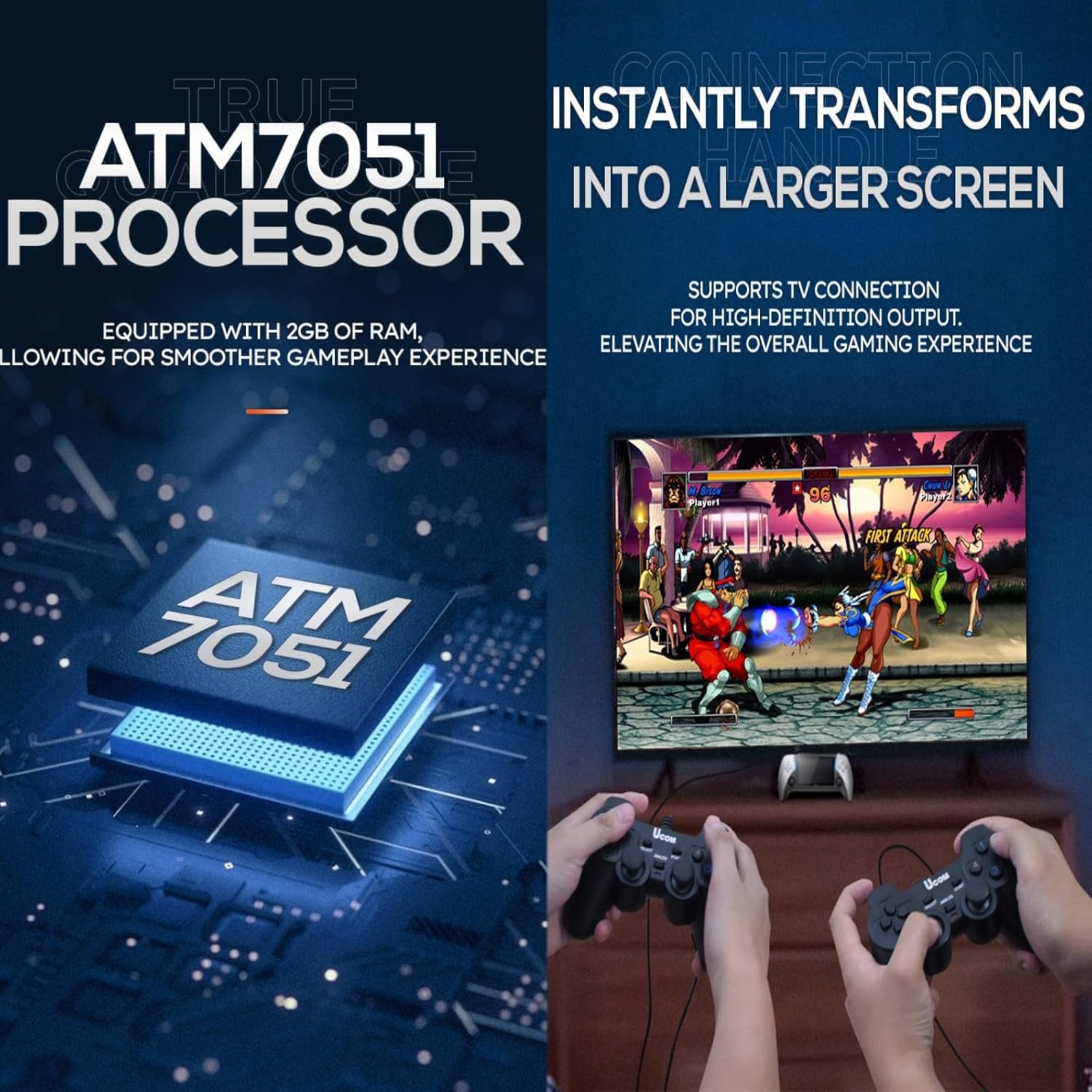 Équipée de plus de 1000 jeux rétro, cette console compacte dispose d’un écran de 4,3 pouces avec une résolution de 800×480. Avec un stockage extensible de 8 Go et un support multilingue, elle est parfaite pour les joueurs de tout âge. De plus, elle comprend une sortie HDMI pour la connecter à votre téléviseur. , cette console vous permet de profiter de vos titres préférés où que vous soyez.