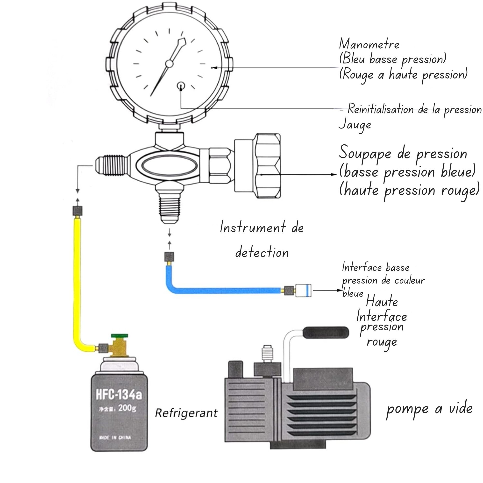 Objectif : Utilisé pour le remplissage de réfrigérant dans le système de climatisation et l'affichage en temps réel de la pression du système