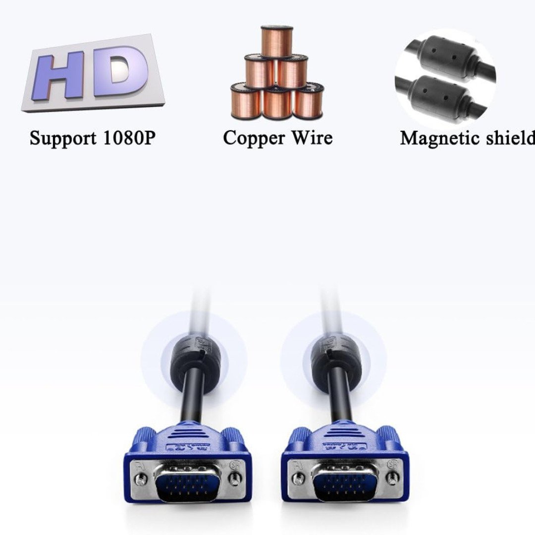 This COOSO VGA cable is the ultimate link for connecting your desktop or laptop to a monitor or projector. The combination of gold-plated connectors, heavy 28AWG bare copper conductors, foil and braid shielding and dual ferrite cores provides superior cable performance. Low impedance, signal distortion is small, 99.9% reduction signal.