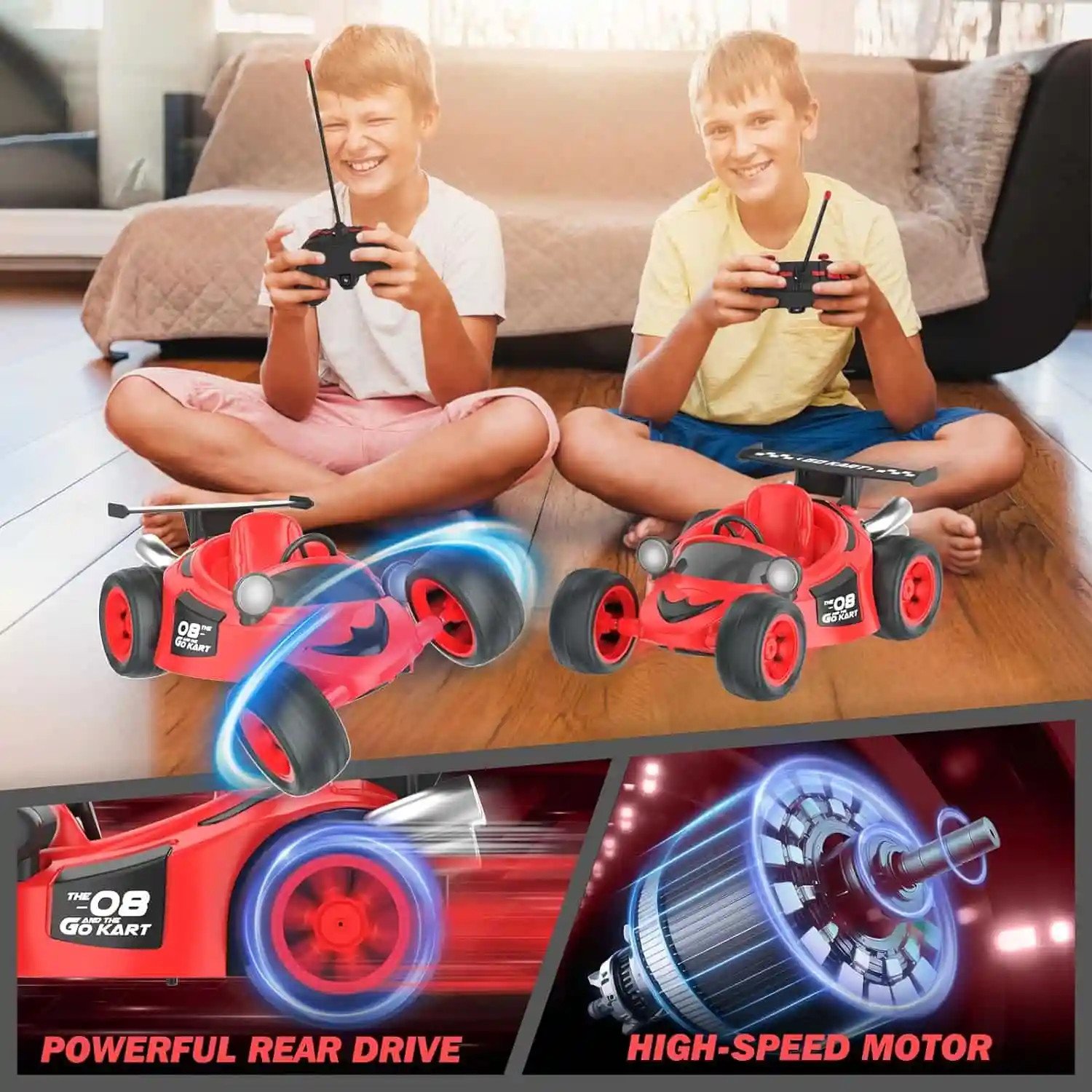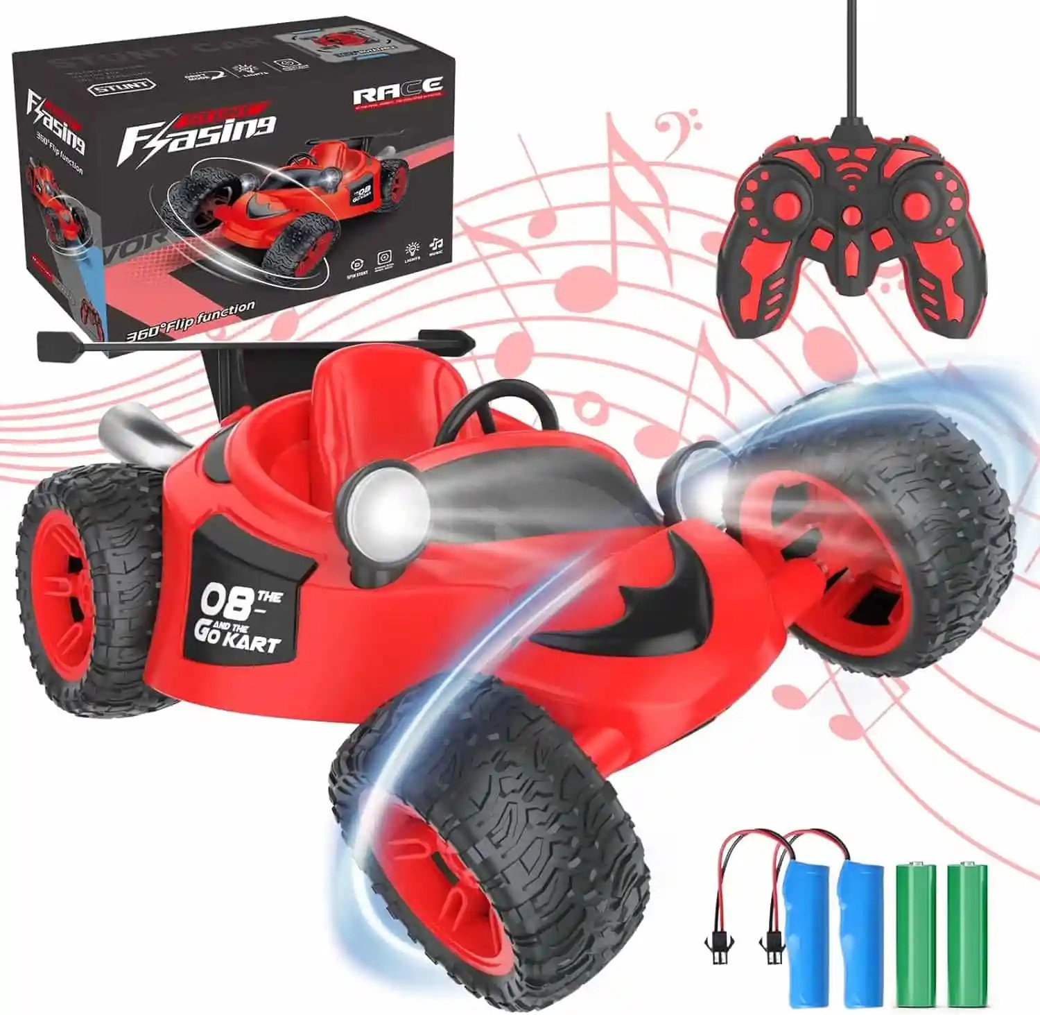 Lumières dynamiques et musique : profitez de la combinaison de la vitesse et du style avec les lumières dynamiques et la musique. En plus des cascades rotatives, les voitures télécommandées ont plus de fraîcheur, surtout la nuit. Il suffit d’allumer le bouton pour choisir les modes avec ou sans lumières et musique.